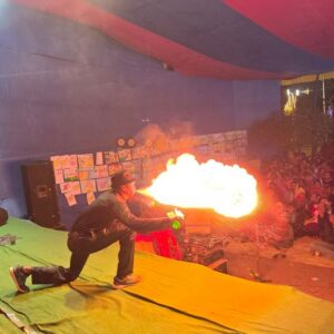 JUGGLER PROSENJIT PERFORMED FANTASTIC JUGGLING & FIRE ACT. PEOPLE WERE VERY MUCH SURPRISED AFTER WATCH THIS TYPE OF BALANCING ACT.