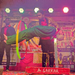 HUGE GATHERING WAS THEIR TO WATCH MAGICIAN A.SARKAR SHOW LIVE. BALANCING A BOY ON SWORD, GUILLOTINE COMEDY ACT, EGYPTIAN TEMPLE, MAGIC WITH BIRD-RABBIT & JOKER WERE HIGHLY APPRECIATED BY ALL.