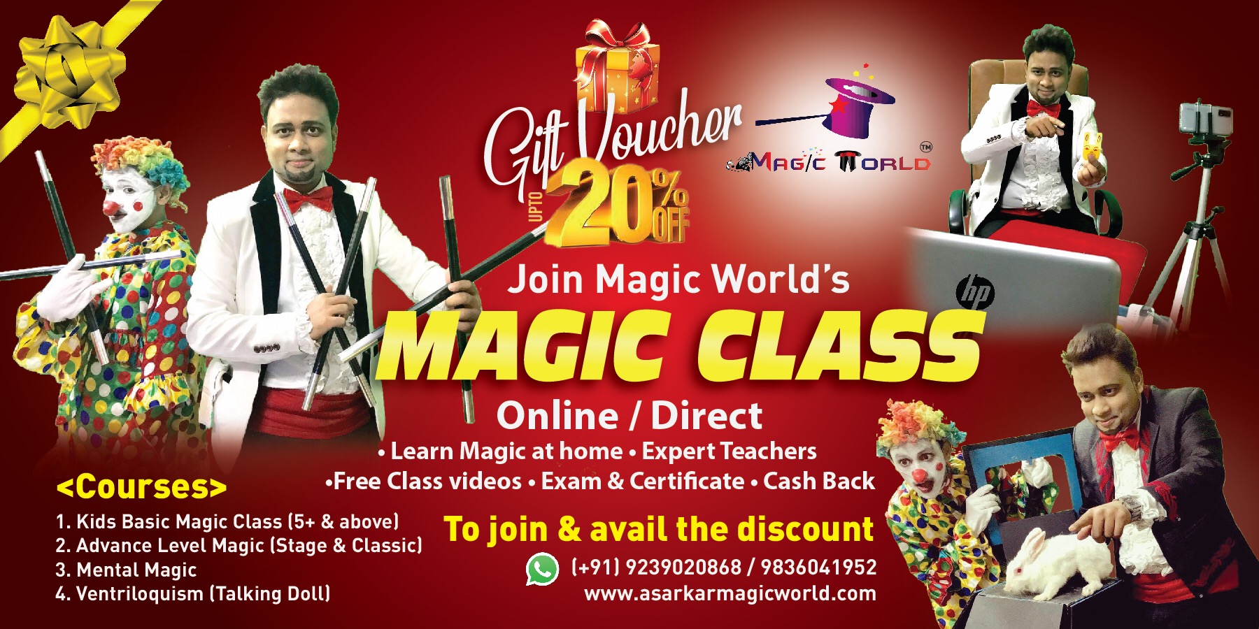 • Gift Voucher on joining of 20% Offer at Magic World Shop’s Magic products & ventriloquism puppets or dolls.