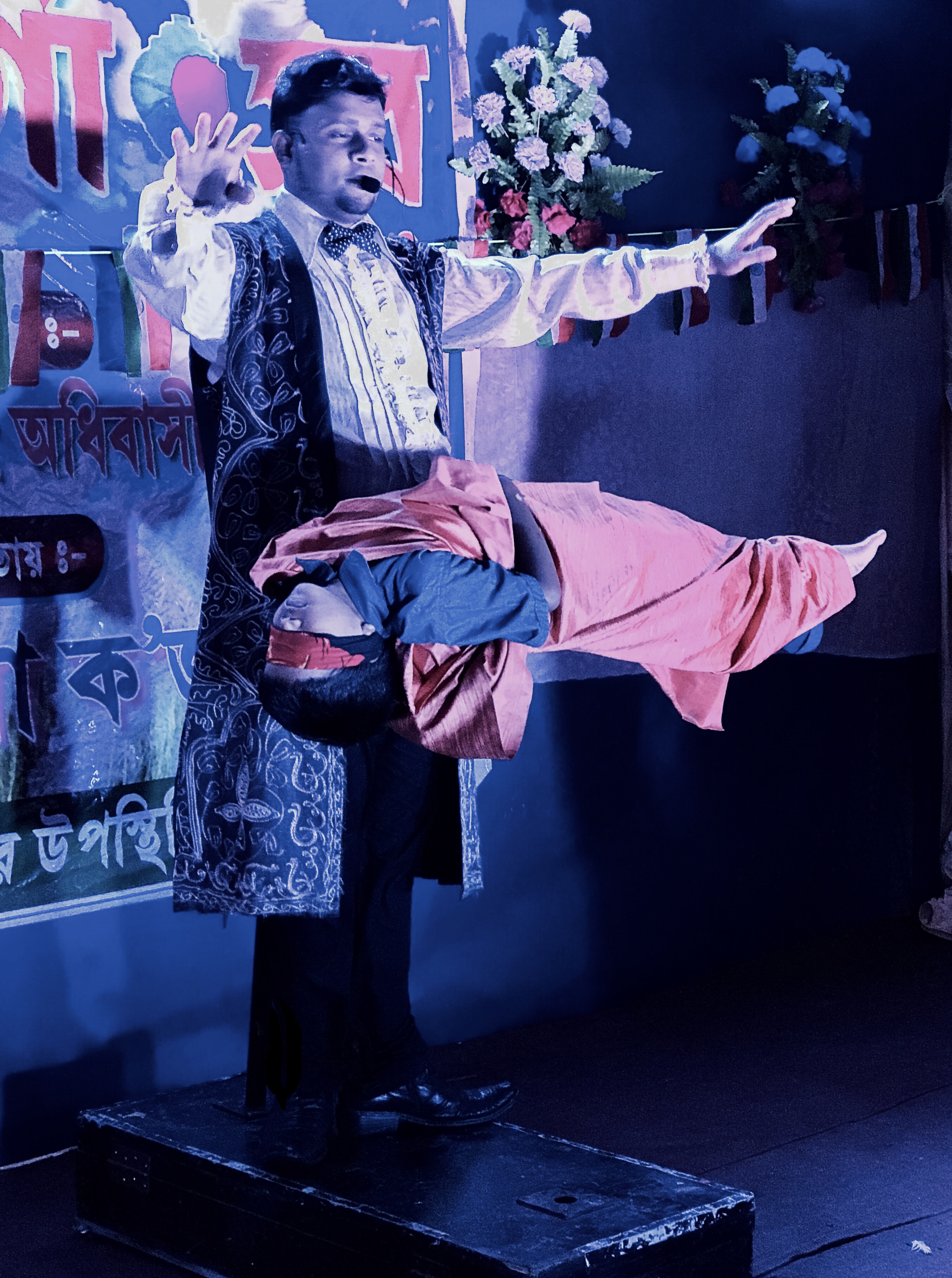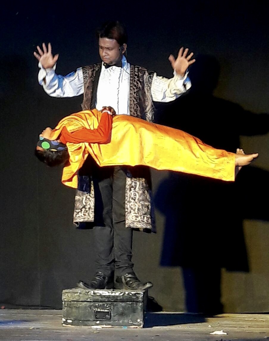 Floating a girl on top of 3 arrows. Then Magician one by one remove 3 arrows. The girl is completely float on air.