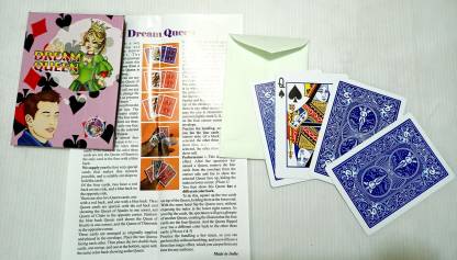 Performer displays a small envelope with four cards in it. He states that this contains the four queens from a deck of cards, but one queen is different from the other three. A spectator is asked to call out any one of the four queens, i.e. hearts, clubs, diamonds or spades. Let us suppose he calls out the queen of hearts. The four cards are removed from the envelope and fanned. Amazingly the selected card is found to be face up among 3 other face down cards. That is not all, for a climax the selected card is turned over and the back is seen to be a different color from the other 3 face down card, i.e. if the 3 face down cards have blue backs then the back of the selected card is seen to be red.
