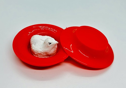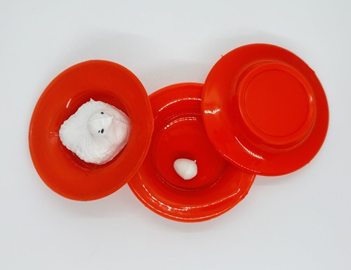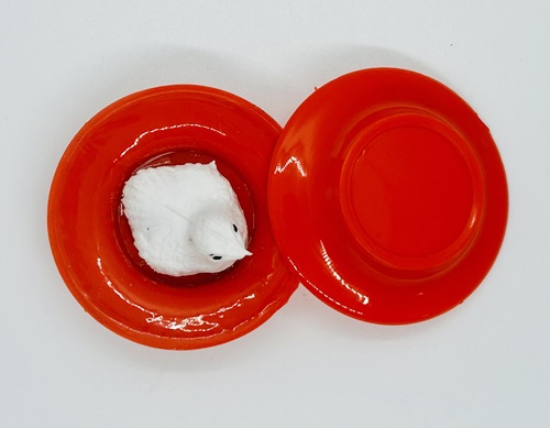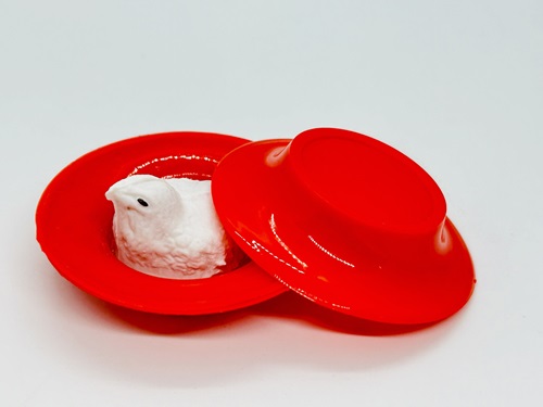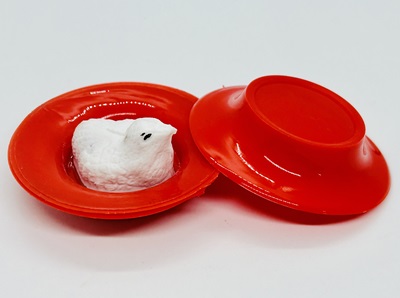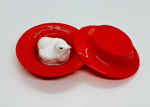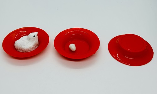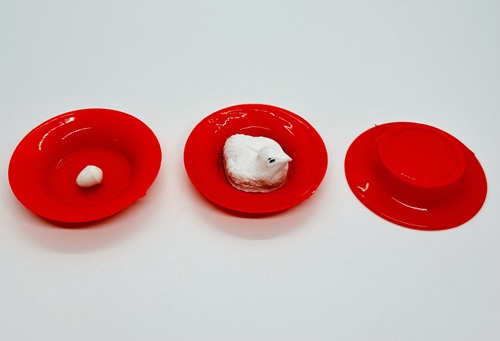 PLASTIC SMALL EGG TURNS INTO PLASTIC HEN MAGICALLY. MAGICIAN SHOWS 2 EMPTY PLASTIC PLATES. THEN A SMALL PLASTIC EGG HE APPEAR OR ADD INSIDE THAT PLATES. THEN WHEN HE OPEN THE PLATE. THE EGG TURNS INTO A PLASTIC HEN.
