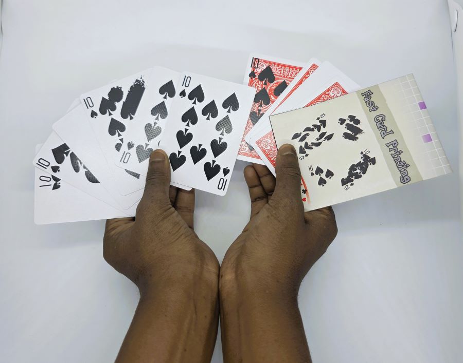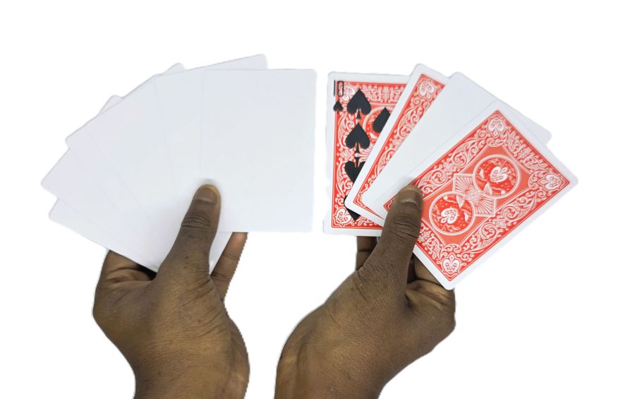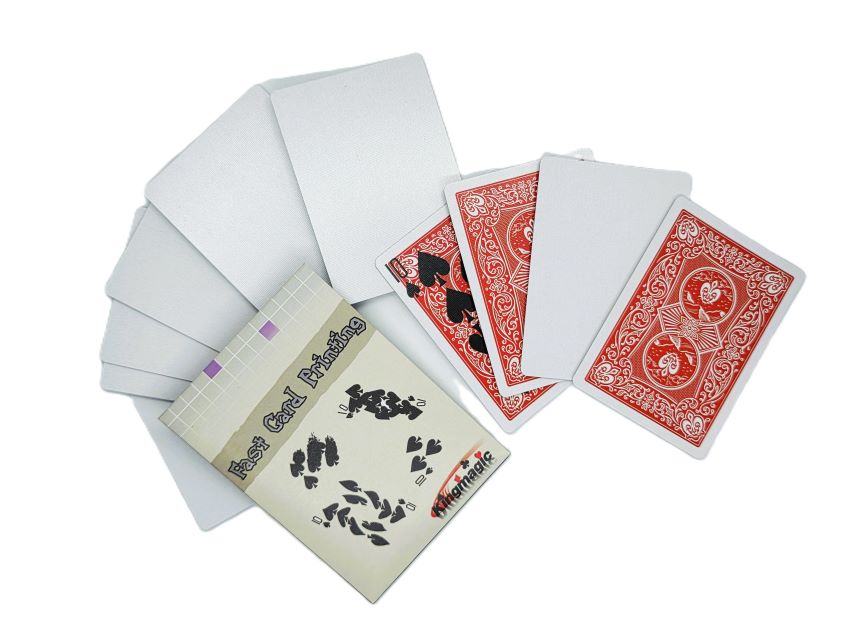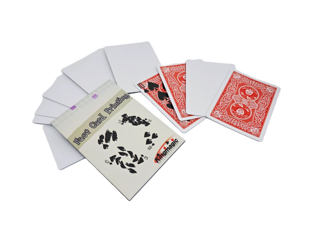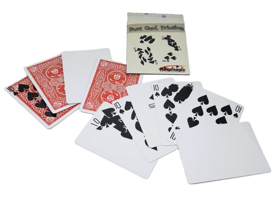 A small packet of cards is cleanly shown to be blank on both sides. A spectator then selects a card from an ordinary deck and, one at a time, the blank cards ‘absorb the ink’ from the selected card. However, you ‘influence’ the printing to create some very strange and bizarre results.
