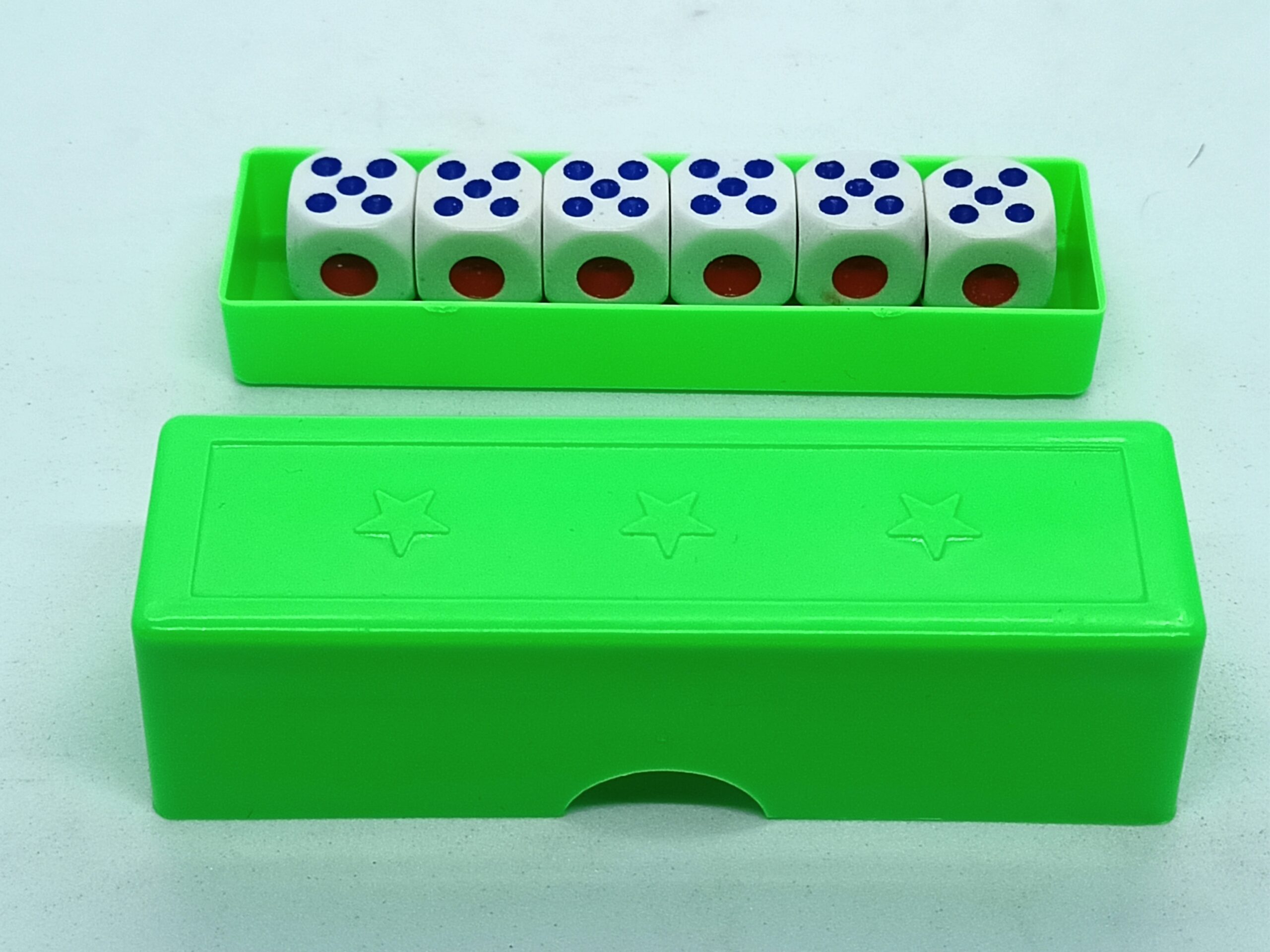 MAGICIAN SHOWS 6 DICES IN A BOX WITH SAME NUMBER ON TOP. THEN HE SHAKES THE BOX & BEFORE OPEN IT PREDICT WHICH NUMBER WILL BE ARRIVED. THEN OPEN IT & WOW MAGICIAN PREDICTION IS MATCHED. AGAIN & AGAIN WHICH MAGICIAN PREDICT THAT WILL MATCH WITH THE NUMBERS.