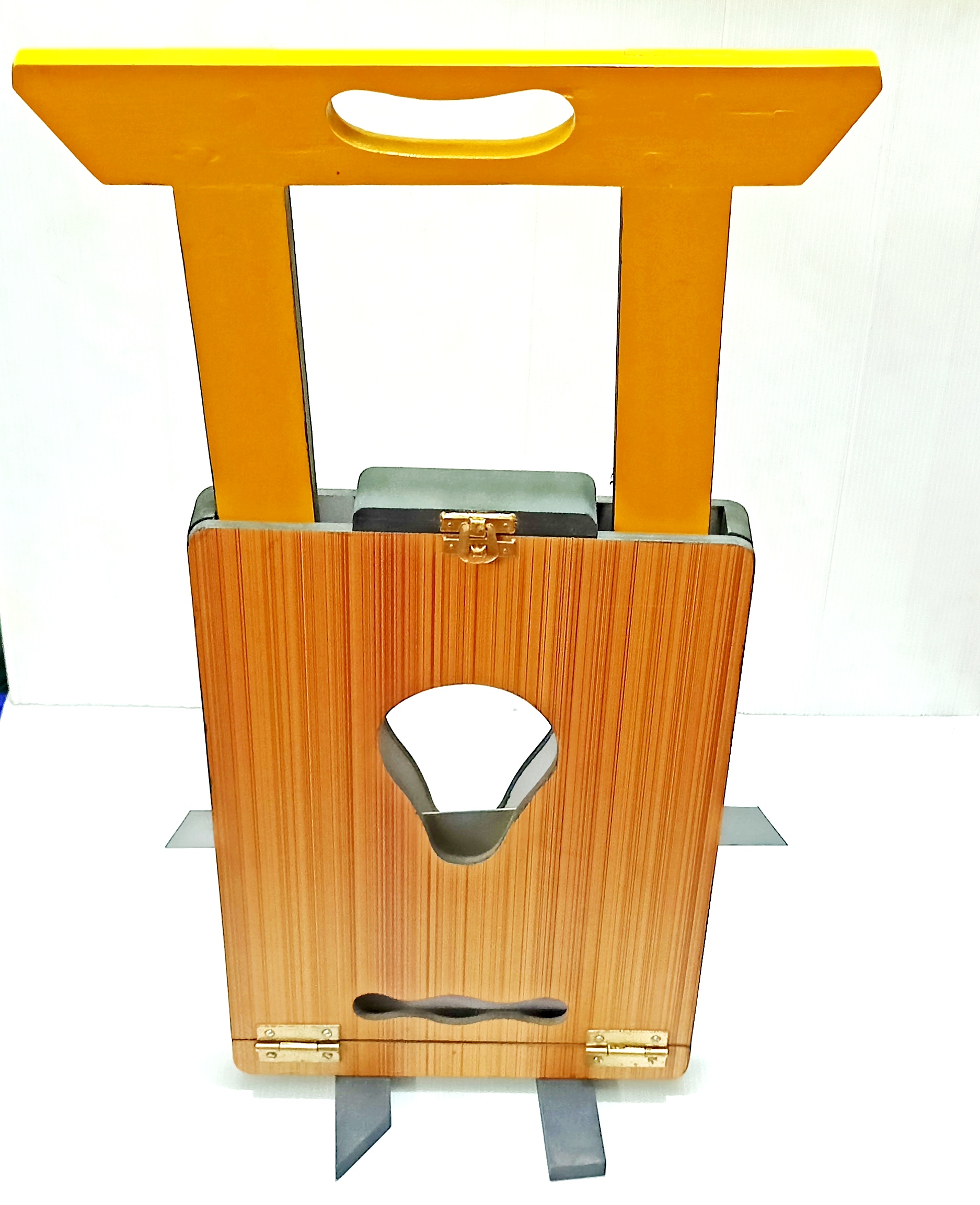 Magician shows a wooden box & blade separately to the public. Then put the steel big blade in the box. Tell one public to put his hand inside the box big hole. Magician also put a vegetable in the box small hole under his hand. Then he punched the blade. The blade goes through public hand & the vegetable. Vagetable is cut into two pieces but the hand remain same. No effect on hand. It is okay.