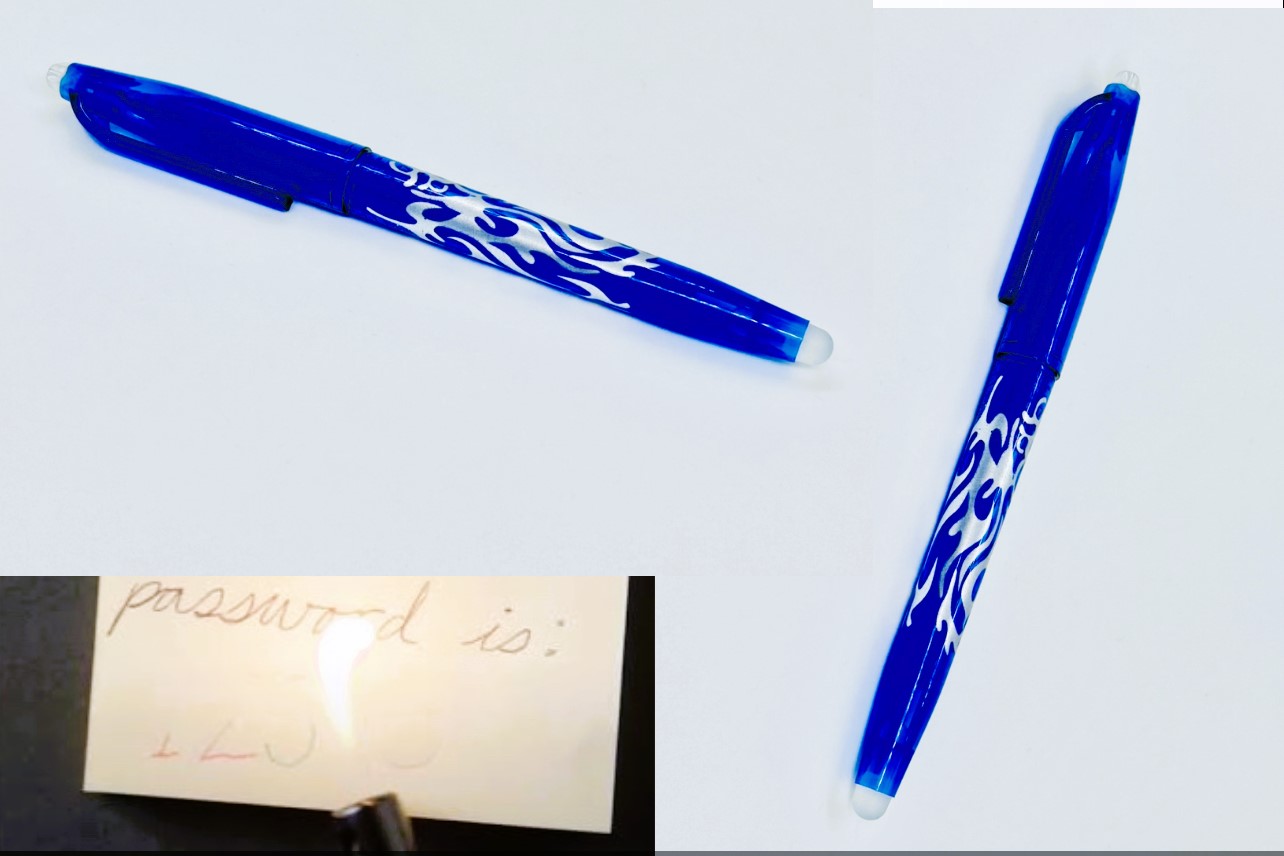 The appearance is completely the same as any normal gel ink ball pen. Functions as a normal pen to write words or draw graphics on. Heat the words written with the pen with a lighter and they will vanish in seconds