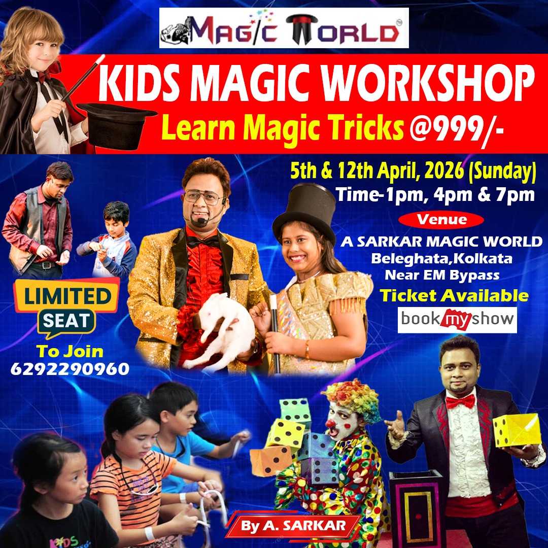 MAGIC WORKSHOP AT A SARKAR MAGIC WORLD ON 12TH APRIL,2026 (SUNDAY) AT 7PM OF RS.999/-