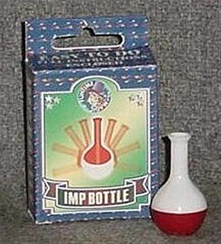 A miniature bottle is rested on its side and stays flat for as long as the magician wishes. When spectators try, it springs back upright. Repeat as often as you wish. Plastic moulded bottle 1 3/4″ tall, supplied with gimmick and illustrated instructions.