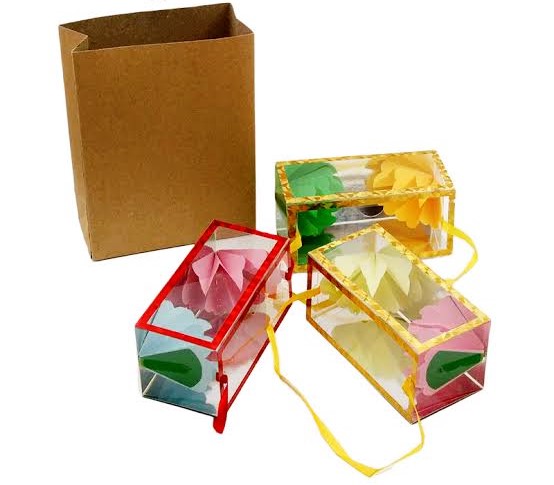 MAGICIAN SHOWS AN EMPTY PAPER BAG. THEN HE PRODUCES 3 LARGE FLOWER BOXES OUT OF THE BAG MAGICALLY. YOU ALSO MAY PRODUCE MONEY, SILKS OUT OF IT AFTER FLOWER BOXES PRODUCTION. VERY GOOD LOOKING PRODUCT. EASY TO PERFORM.