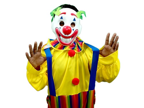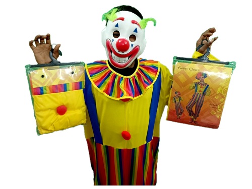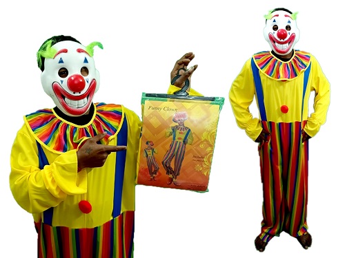 JOKER CUSTUME FREE SIZE FOR ADULTS. GOOD QUALITY VERY SHINNING CUSTUME OF SILK CLOTH. COMPLETE DRESS IS IN 1 PC & 1 JOKER MASK INCLUDED. IT IS USED IN MAGIC SHOW, CIRCUS, KIDS PARTY, ADULT FANCY CUSTUME PARTY, PRANK VIDEO SHOOT, CINEMA, THEATER, PUBLICITY CAMPAIGN, BIRTHDAY PARTY CHARACTER, CARNIVAL ETC. WASHABLE IN HOME. MASK QUALITY IS ALSO GOOD.