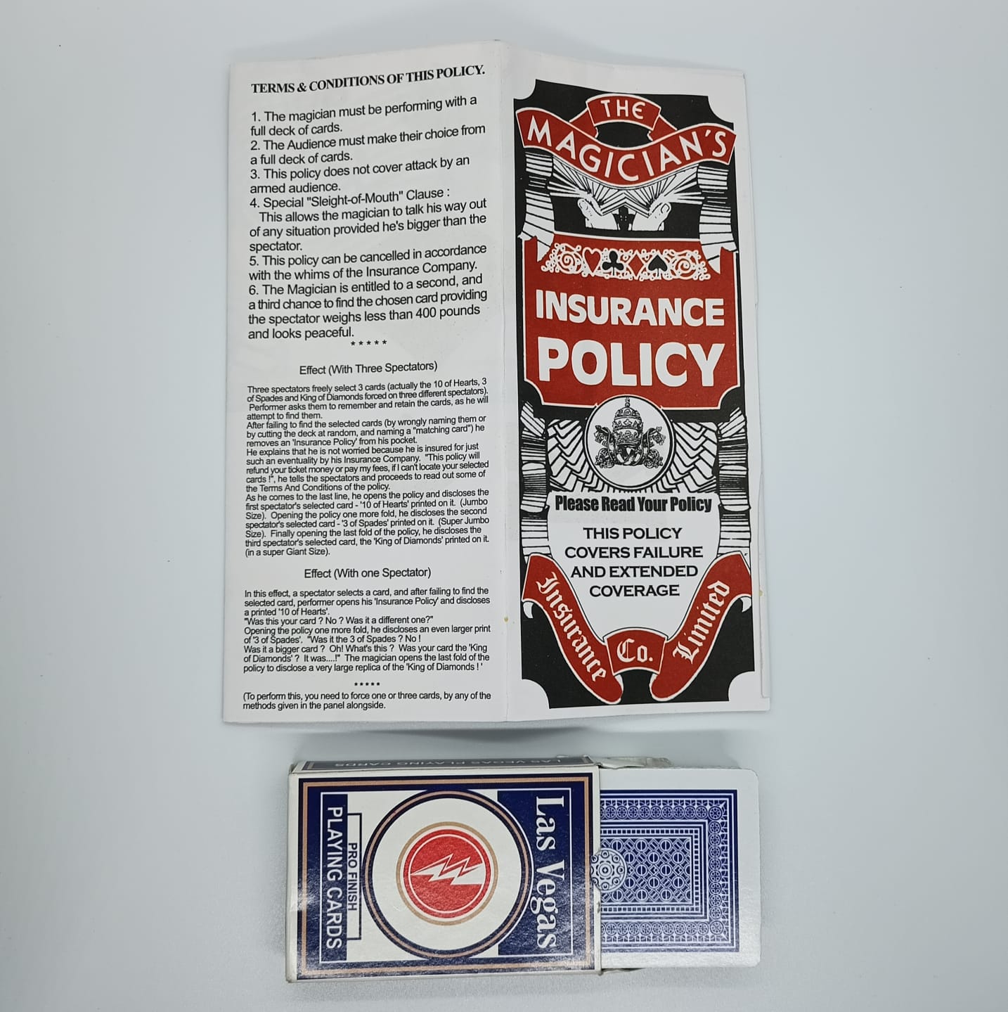 MAGICIAN'S INSURANCE POLICY MENTAL MAGIC TRICK (CARD PACKET INCLUDED)