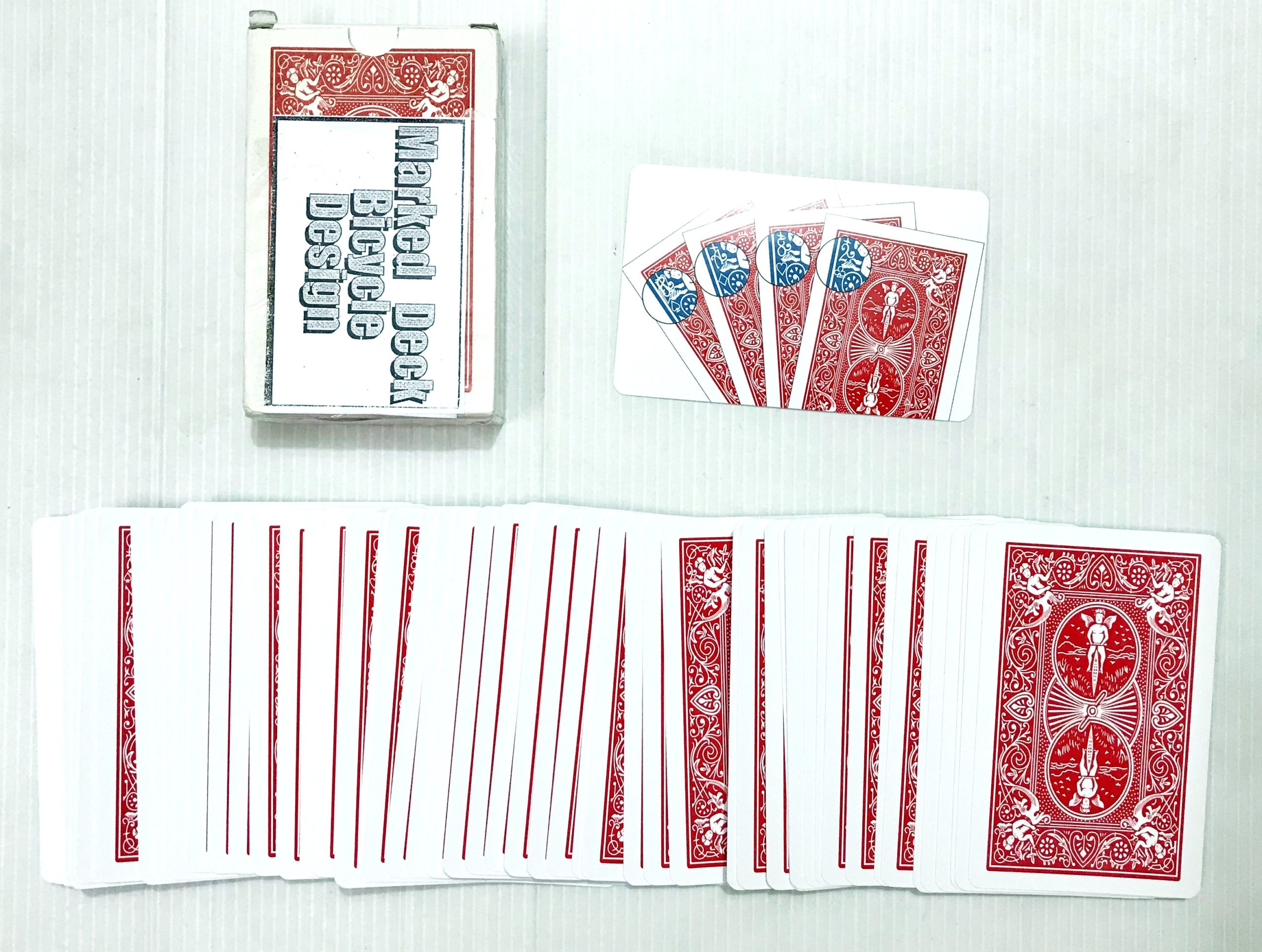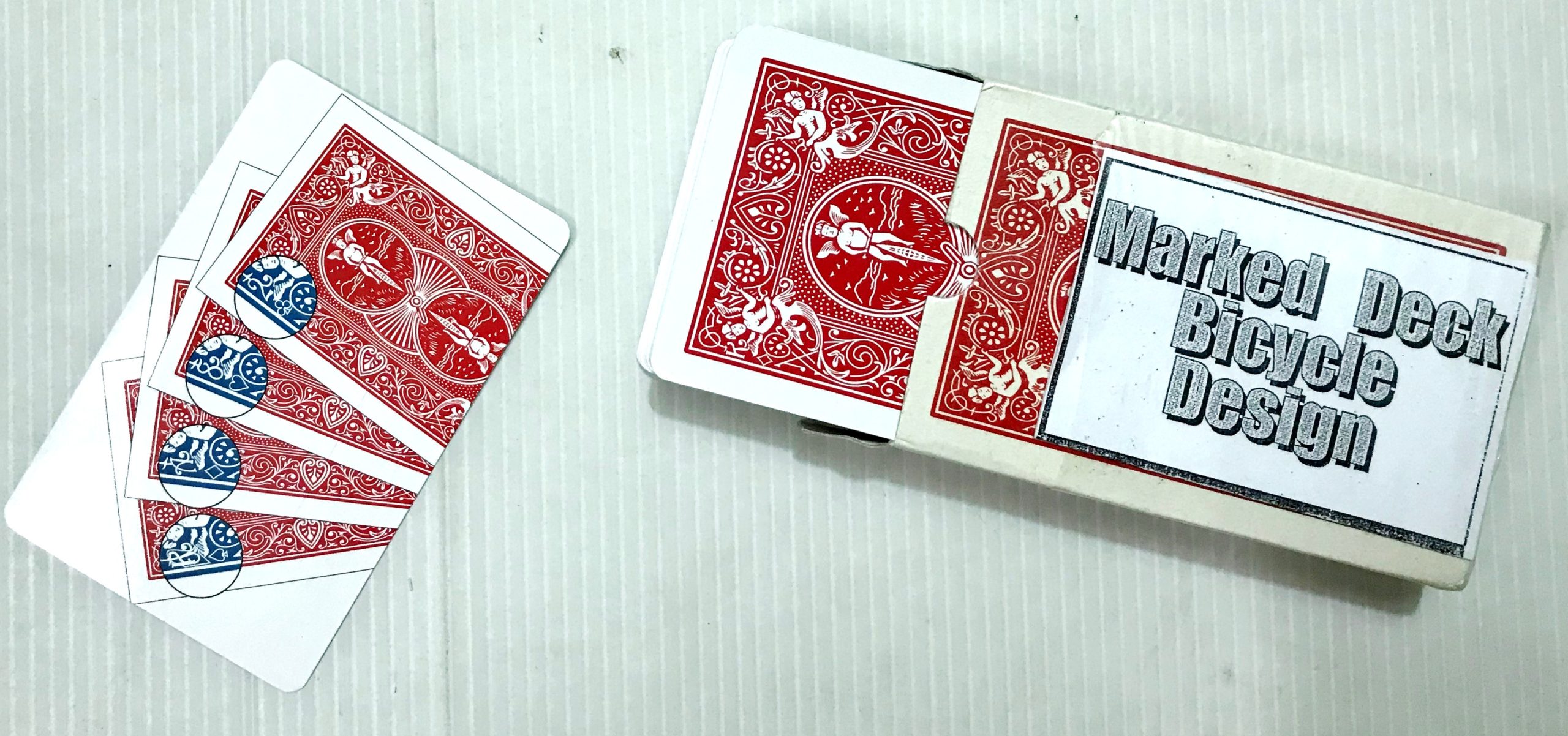 This Bicycle design marked deck is one of the easiest to read but highly deceptive. We have these available in red back Bicycle design. These are not original Bicycle Cards, but an identical design, modified for the marking. Comes with 1 Bonus Double Back RED & Blue Card added for Multipurpose effect.. You can very easily use them for dozens of tricks of your own, or get one of the many books available on this very versatile deck.