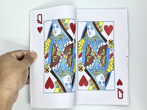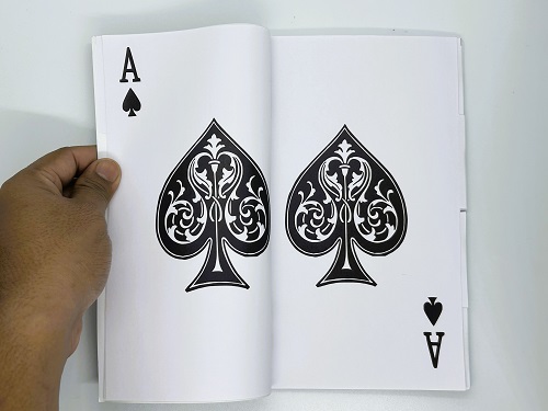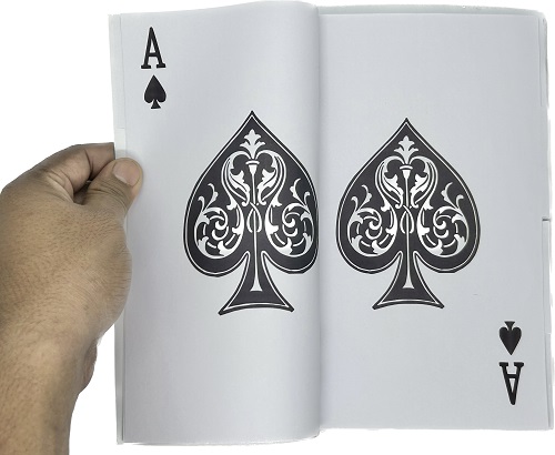 MAGICIAN SHOWS A BOOK TO PUBLIC. THEN HE SHOWS A CARD PACK & TELLS A PERSON TO SELECT A CARD. NOW MAGICIAN OPENS THE BOOK, WOW THAT CARD PICTURE IS PRINTED INSIDE ALL THE PAGES OF THE BOOK. THEN MAGICIAN ACTS TO HYPNOTISE THAT PERSON. NOW THE PERSON HYPNOTISED & HE SEES THAT THE CARD IS CHANGED. THEN THE CARD PICTURE OF BOOK TURNS INTO FRUIT & VEGETABLE. THEN THE BOOK EMPTY. THEN MAGICIAN TAKES THE PERSON AT PREVIOUS NORMAL STAGE. NOW HE CAN SEE ONLY THAT SELECTED CARD.