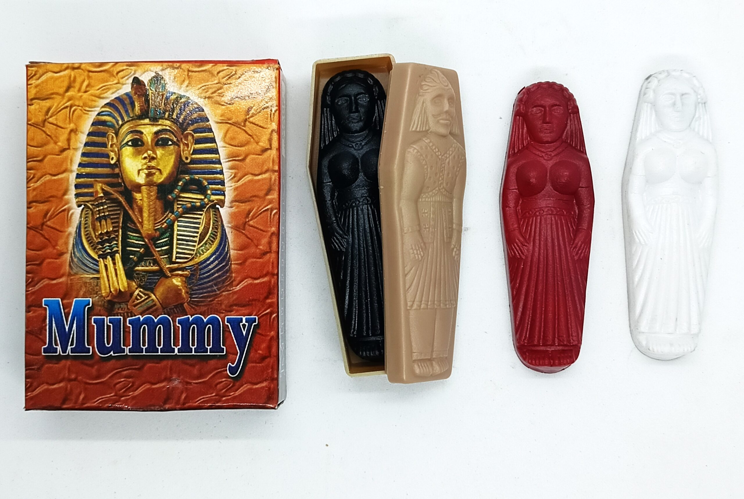 1.MUMMY MYSTERY: AMONG 3 MUMMYS, MAGICIAN CAN FIND OUT WHICH COLOR MUMMY INSIDE THE CASE WITHOUT OPENING IT.
