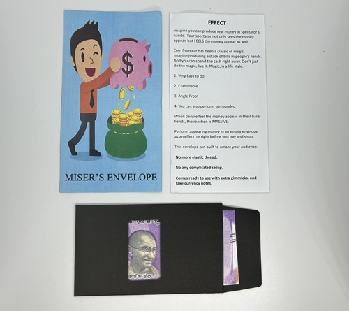 This envelope can built to amaze your audience. No more elastic thread. No any complicated setup. Comes ready to use with extra gimmicks, and fake currency notes.