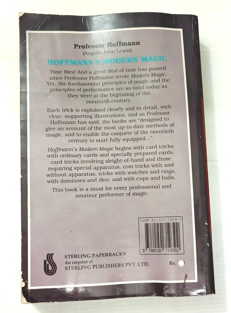 This is treated as the first book on Magic. It was written by Prog Hoffmann of eighteen century. Hundreds of Magic effects are explained here with chapter wise & with pictures. This copy was the last publication copy of 1997. This is a antic book with antic value. This book is created history. This was written for the common people first time.