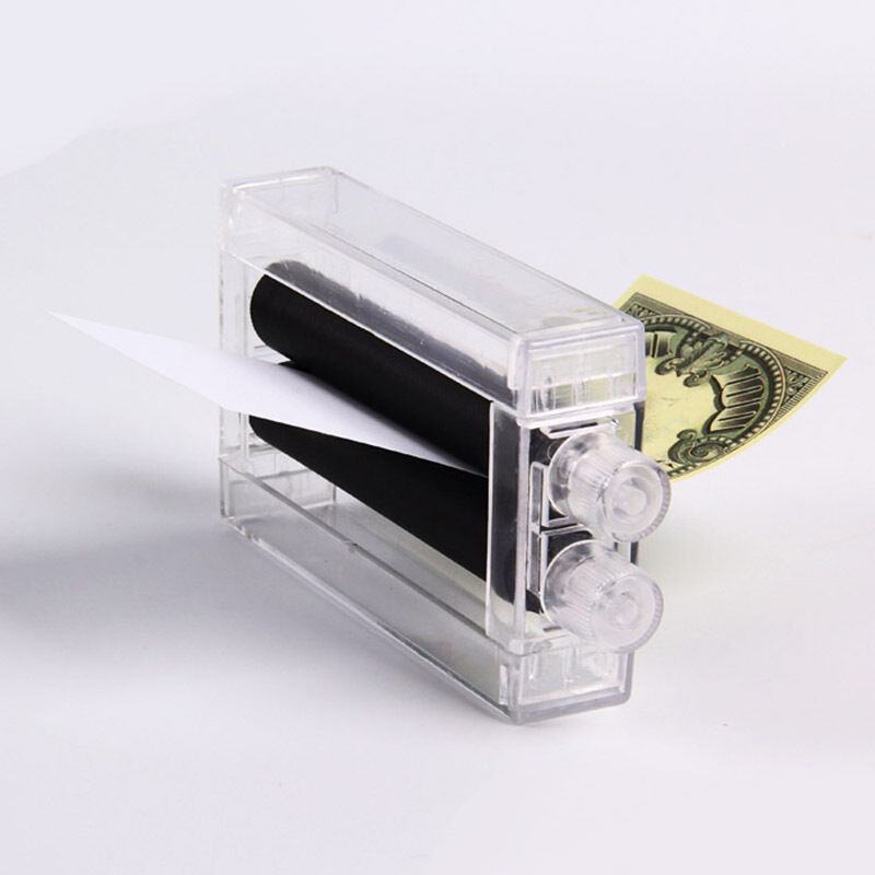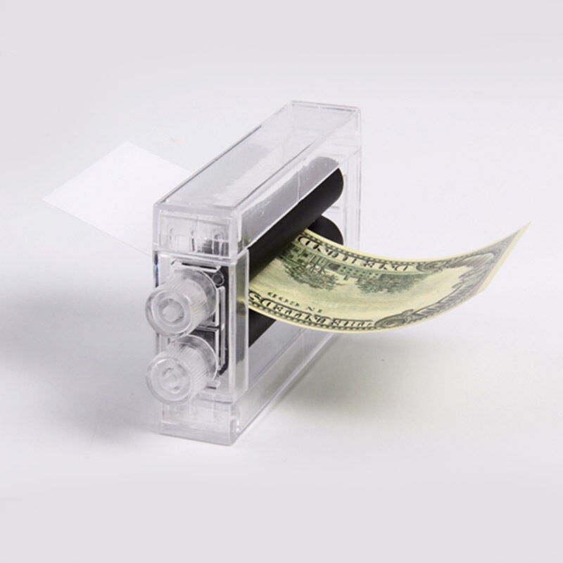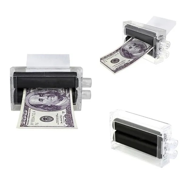 SPECIAL TOY MACHINE. WHEN YOU INSERT A PAPER IN THE ROLLER & ROLL IT. IT TURNS INTO CURRENCY. TWO CURRENCY YOU MAY PRINT LIKE THAT.