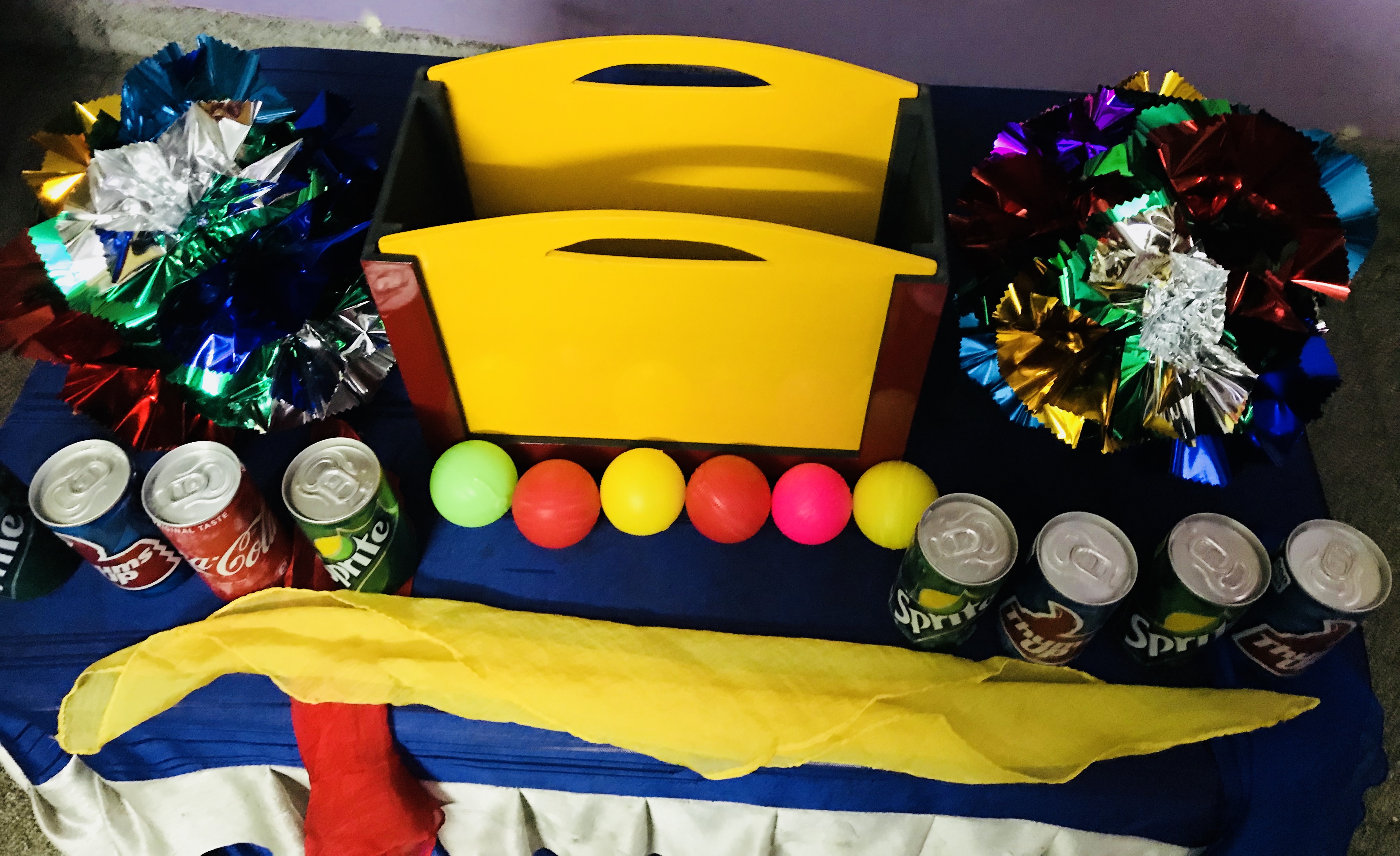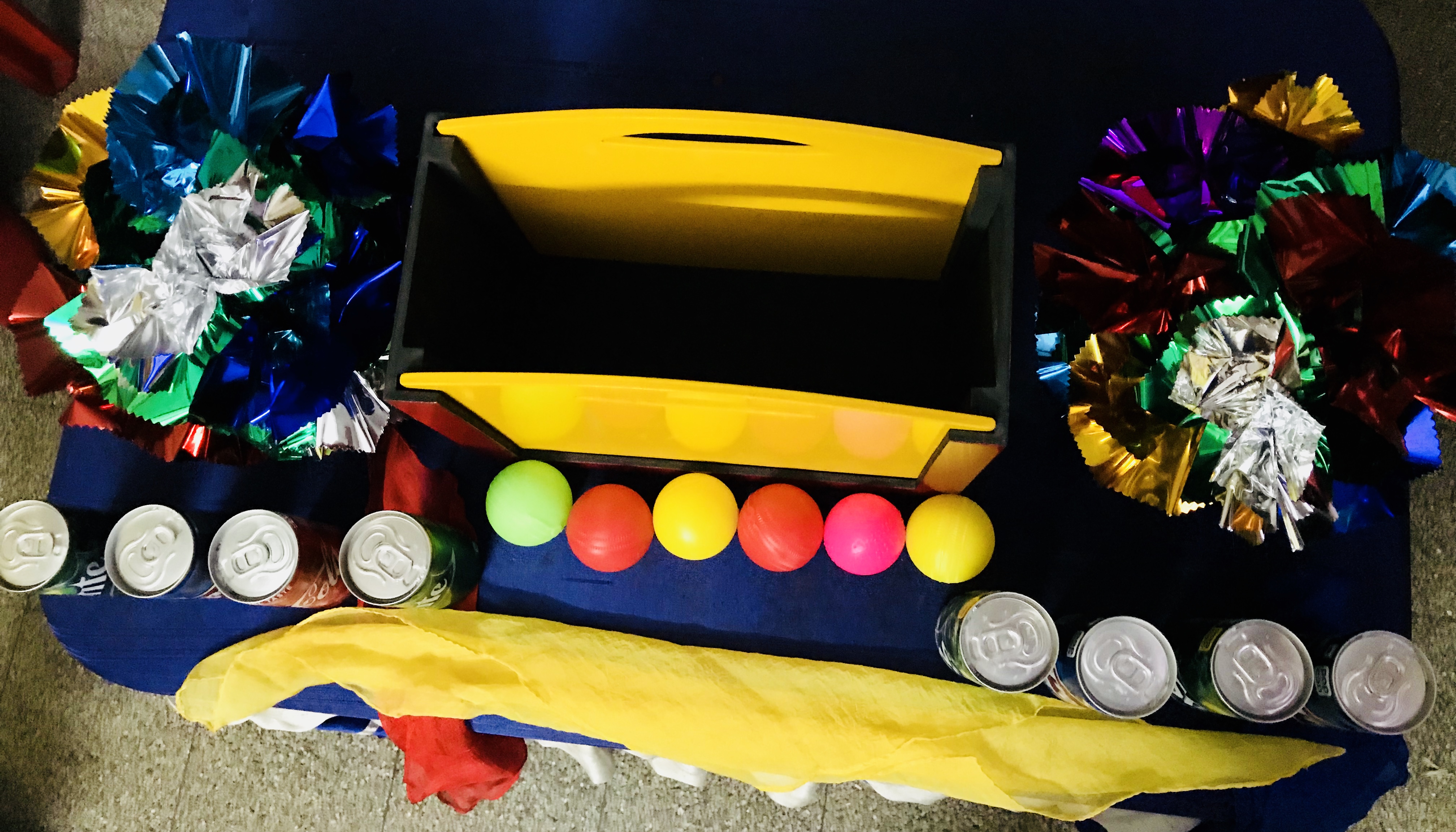 8 Cans, flowers, balls, silks produced from an empty wooden box. Cans will be provided with this set. Silk, balls & flowers will have to purchase separately.
