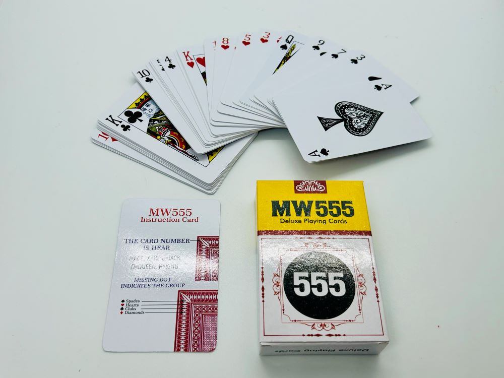 SPECIAL CARD WITH CODE TO RECOGNIZE THE CARDS FROM BACK SIDE. ALL 53 CARDS BACK DESIGNS ARE DIFFERENT, BUT LOOK SAME.FULL INSTRUCTION INCLUDED. AFTER FOLLOW THE INSTRUCTION VERY EASY TO IDENTIFY THE CARDS FROM FACE DOWN.