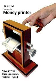 The Note Printing Machine is very popular because it fulfills a basic fantasy. If one could do real Magic., the first thing one would do is mint money, or transform blank paper to currency bills. This apparatus allows you to produce this effect. Performer displays a frame with two rollers. A sheet of paper is fed between the rollers and the rollers turned, and the paper emerges printed as a genuine currency note which can be examined and even used.