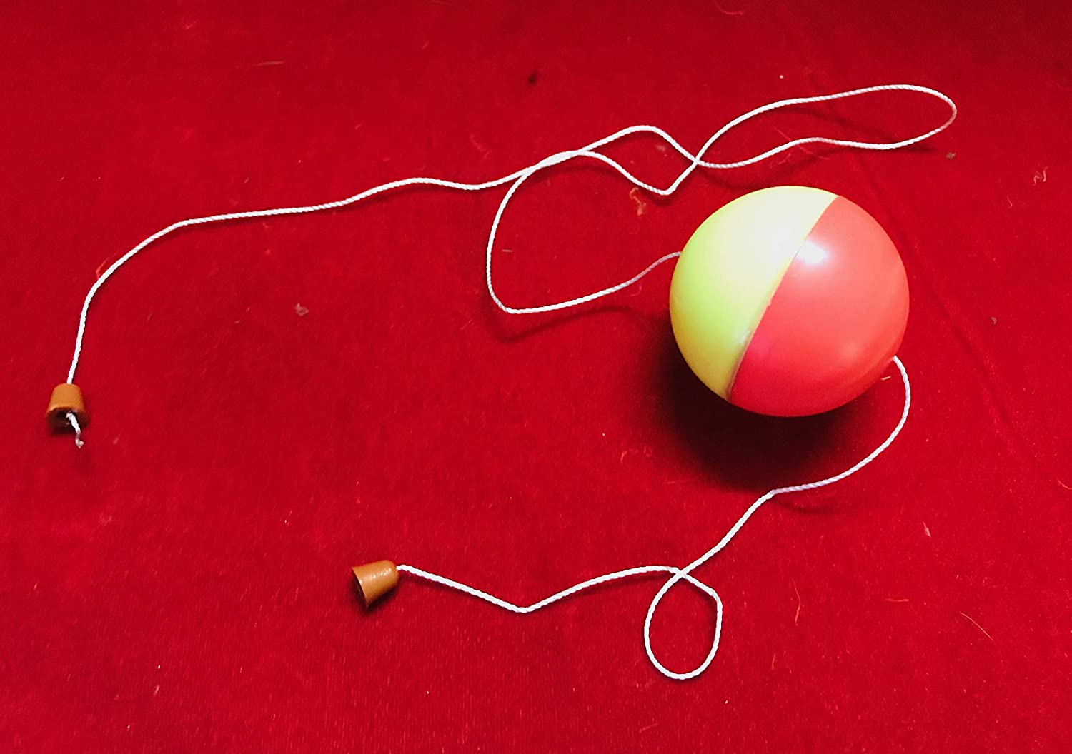 A combine color ball on a string that you hold up in front of your audience, allowing the ball to fall down along the string until you say “STOP”. Movement of the ball down the string can be started and stopped on your command. Easy to do.