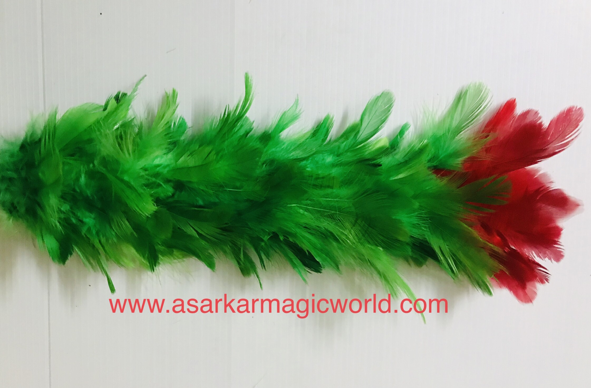 Magician shows one small feather flower stick, then moves his hands, the stick turns into two sticks. He puts one stick in pocket. Then he takes one sticks in hand & shakes it again. Then one sticks becomes two sticks. Then he holds the two sticks in his both hands & shake. The two flower sticks becomes 4 flower sticks again. Total 5 flower sticks in a set.