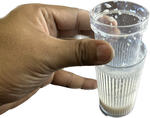 When you crumble the paper cone with the milk inside into a ball, the milk has vanished and the paper is dry!