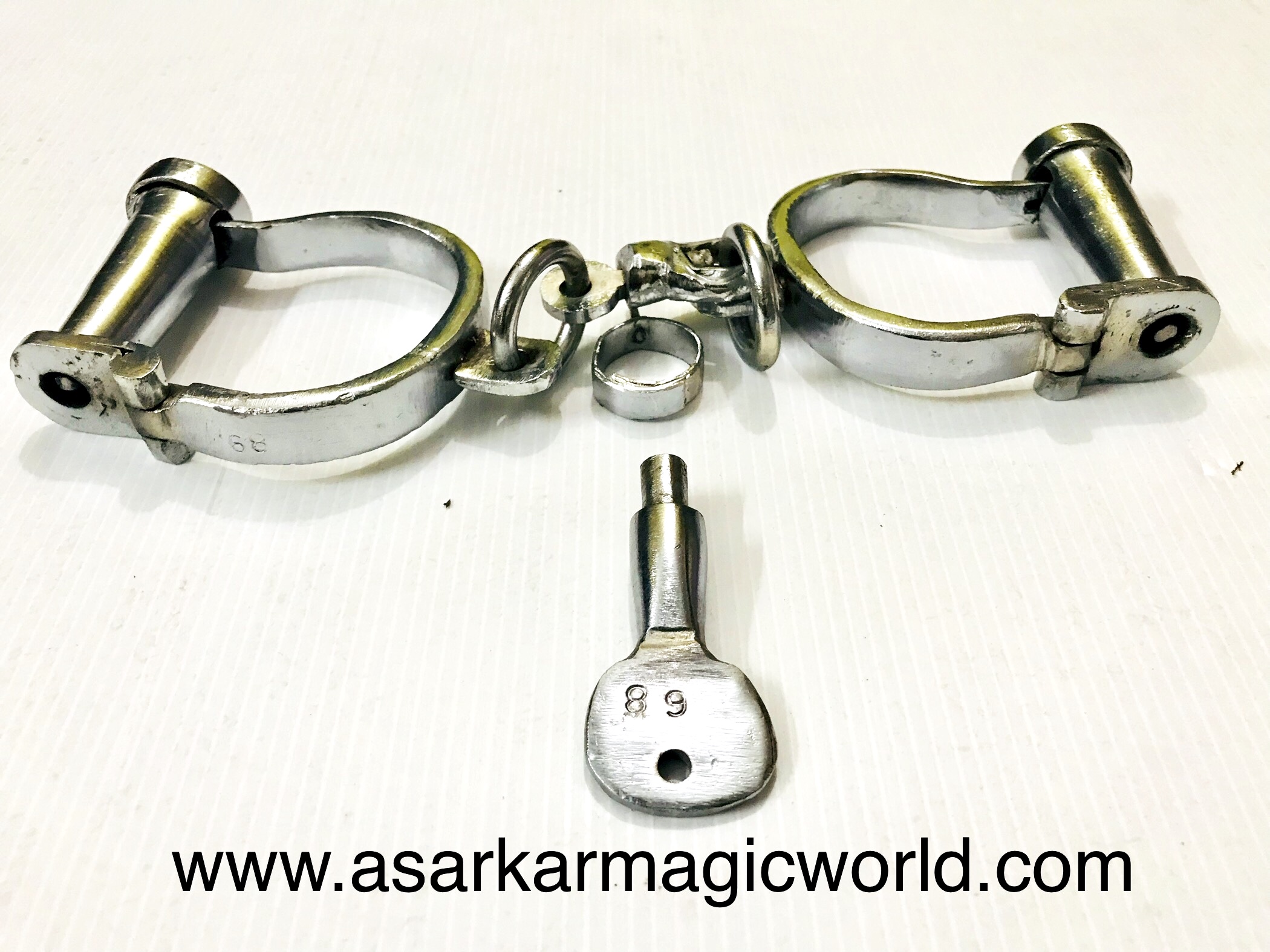 Audience locked Magicians hands by Handcuff. Magician covers his hands with cloth for few seconds & remove his hands from handcuff  magically without open it.  All it is used in Illusion box, milkcan escape, bed of death, chiness water torture shell Magic Items.