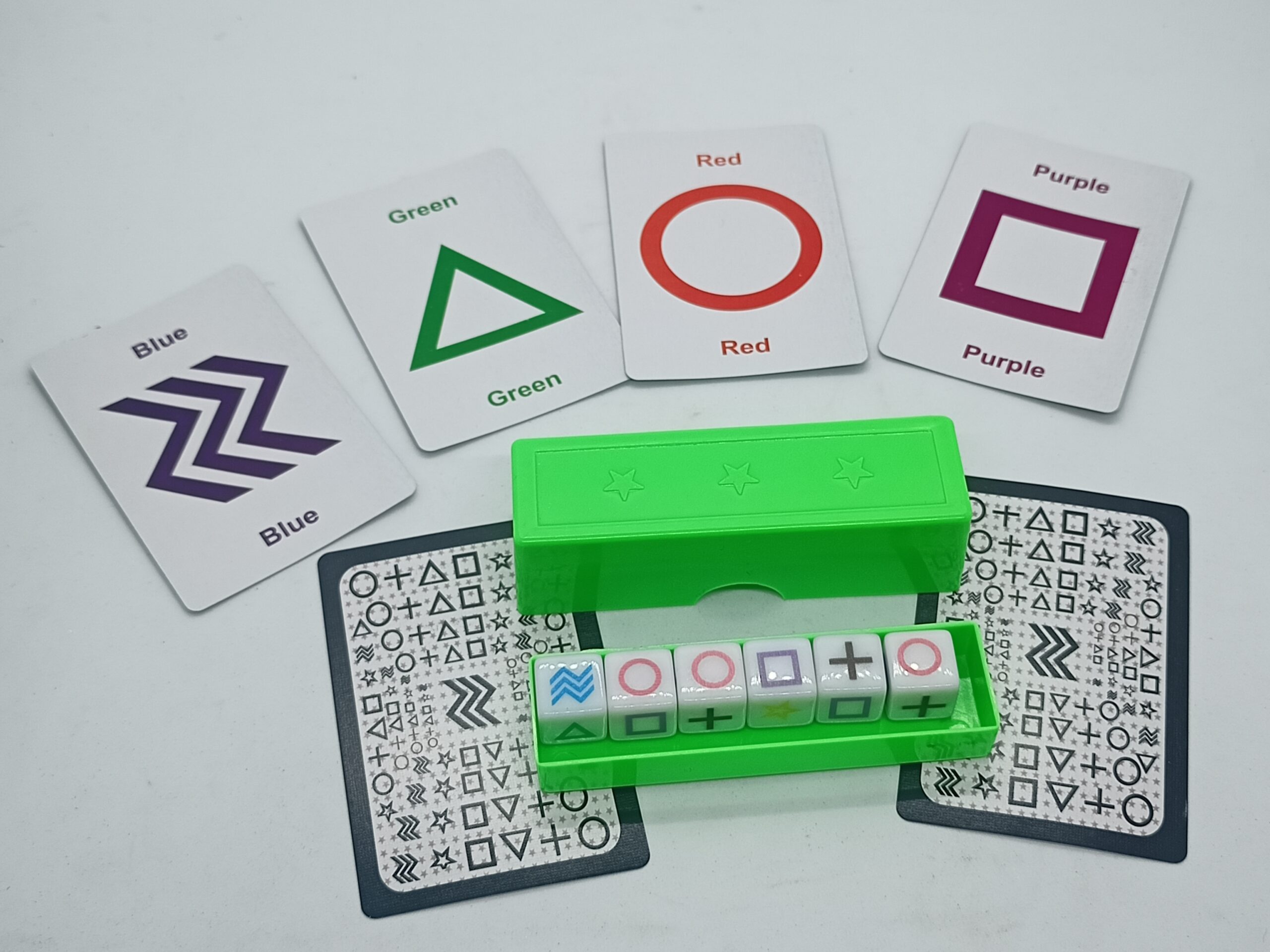 GOOD QUALITY BOX WITH COVER, 6 DICES WITH ESP SIGNS & 6 SPECIAL CARDS WITH ESP SIGNS INCLUDED IN THE SET.