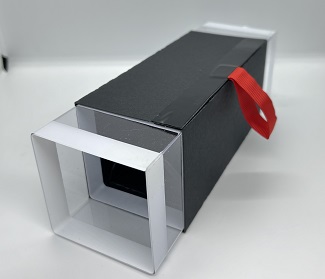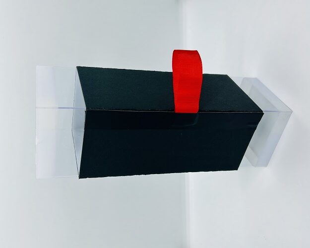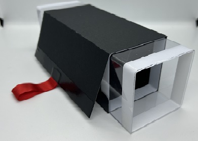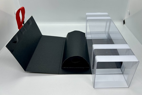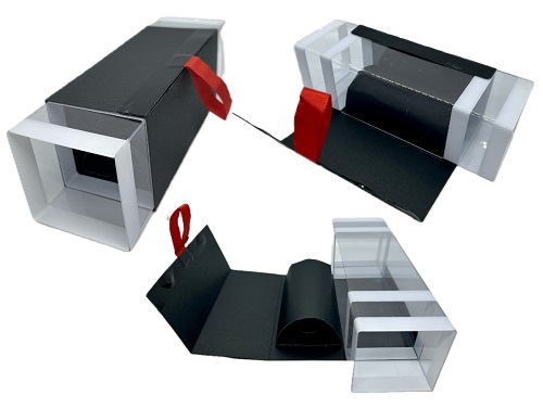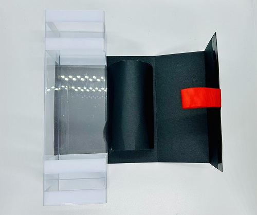 PAPER & TRANSPARENT PLASTIC SHEET USED TO MAKE IT. MAGNETIC LOCKING USED TO LOCK ITS COVER.