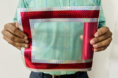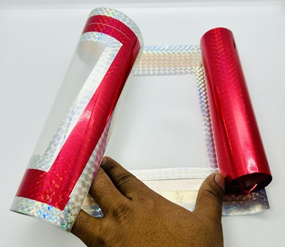 SEMI TRANSPARENT PLASTIC SHEET TUBE WITH SHINNING BOARDER.