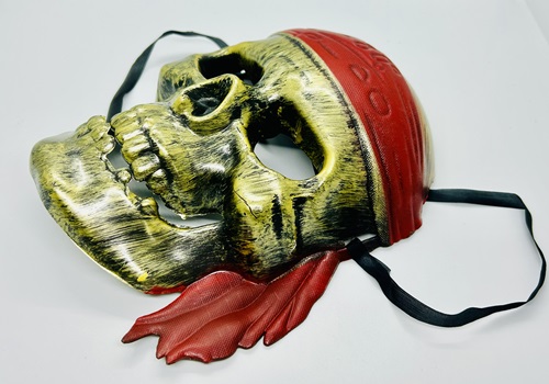DELUX QUALITY PLASTIC MASK. VERY SHINNING. GOOD QUALITY SKULL PLASTIC MASK. NO AGE LIMIT, ANY ONE CAN WEAR IT. FOR MAGIC SHOW ACT, ANY SECRET MISSION, SECRET TEACHING YOU MAY USE IT. IT HAS ELASTIC BELT AT BACK TO WEAR.