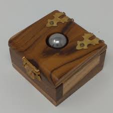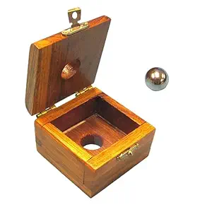 We supply you the special mechanical box approximately 1.5″ height and 2.5″ x 2.5″ length and breadth, made from beautifully polished teak, a solid steel ball of the appropriate size, and the “glass” sheet, (actually clear acrylic, which will not break as easily as real glass), with full instructions.