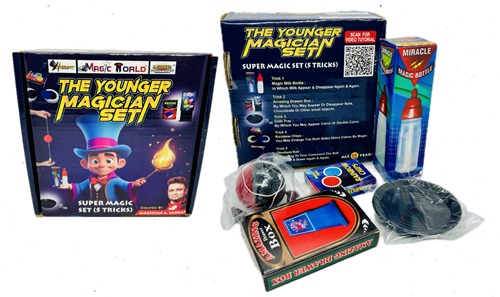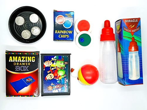 4. COIN TRAY MAGIC : – Magician shows an empty round tray. Then he puts 2 coins on it. Then he pours the coins on his palm. Wow now there are 4 coins. The coins increase & double with the help of the tray magically. This magic trick is one perfect classic novelty gift to anyone for kids show, street souvenir, stage magic, birthday parties, Halloween etc. or for all those who are interested in performing entertaining magic tricks with friends and family.