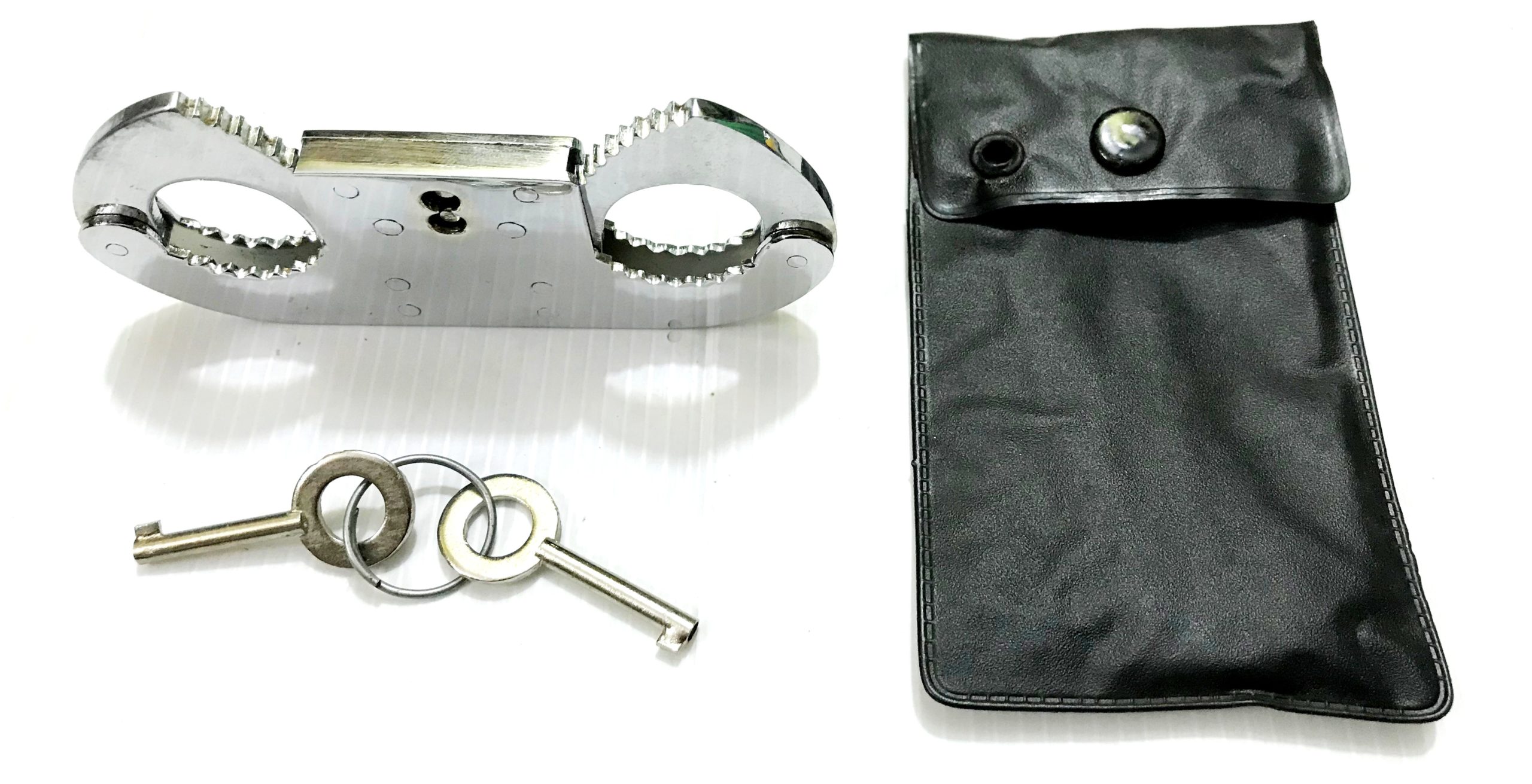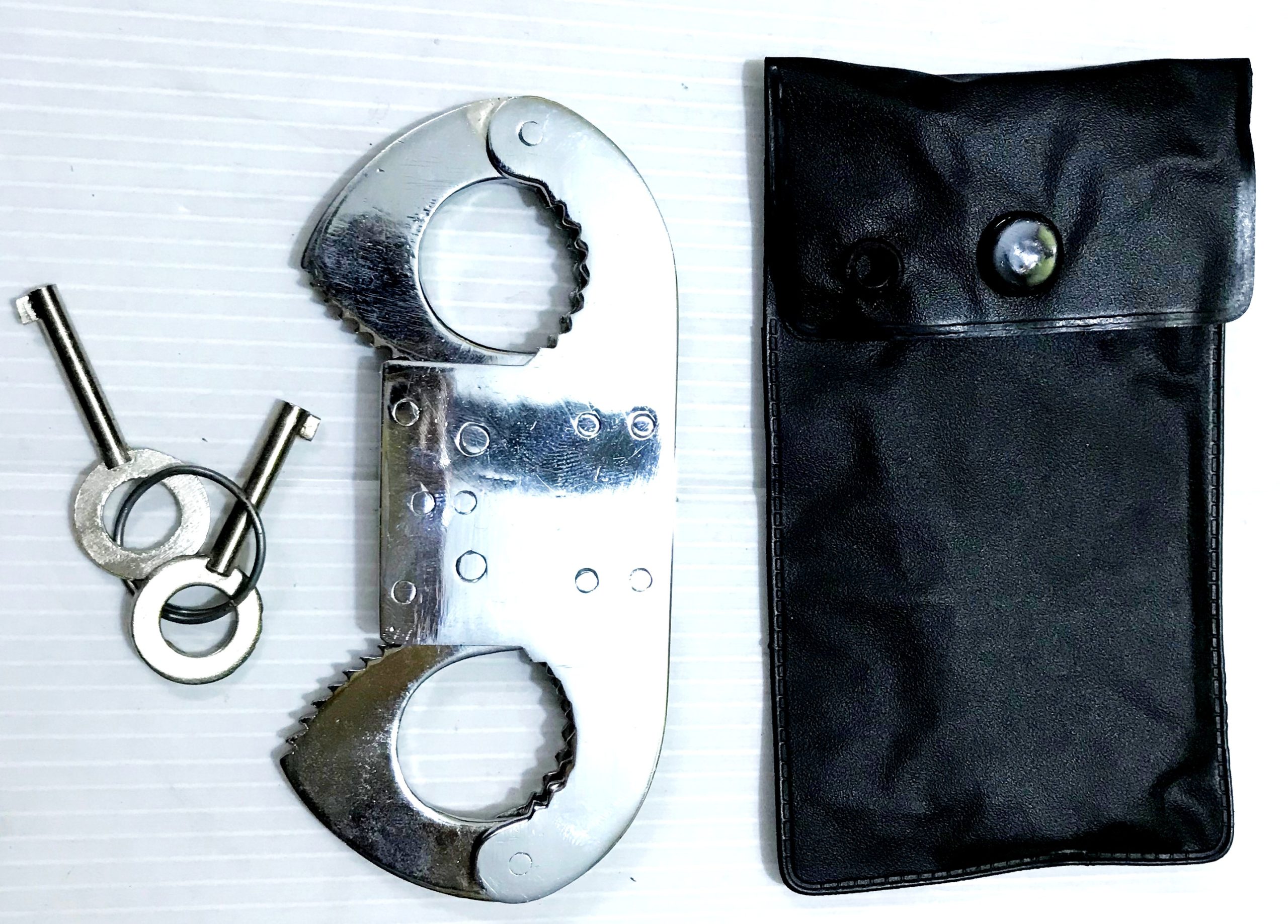 This is an ungimmickier set of professional thumb cuffs as used by many police departments around the world. When applied to the spectator’s thumbs, it’s impossible for him to escape.