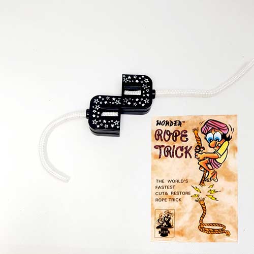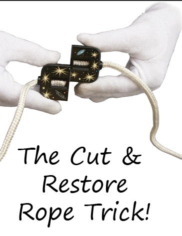 A rope is visibly cut into two pieces and then just as quickly- and just as visually- it is restored.