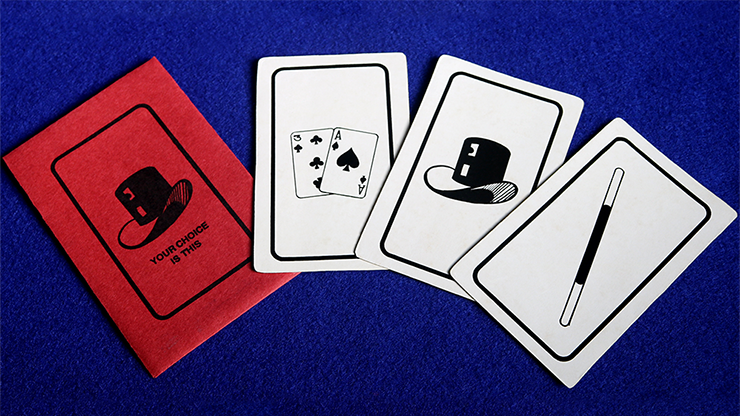 The mind-reader shows an envelope. From this he takes out three playing cards. These are found to depict pictures of a magician’s three most essential items. Thus one card has a drawing of a fan of playing cards, the second card has a picture of a top hat and the last card has a picture of a magic wand. A spectator has a completely free choice of any picture card. She can change her mind if she wants to. Surprisingly, the mind-reader proves that he has already predicted what she is going to select.